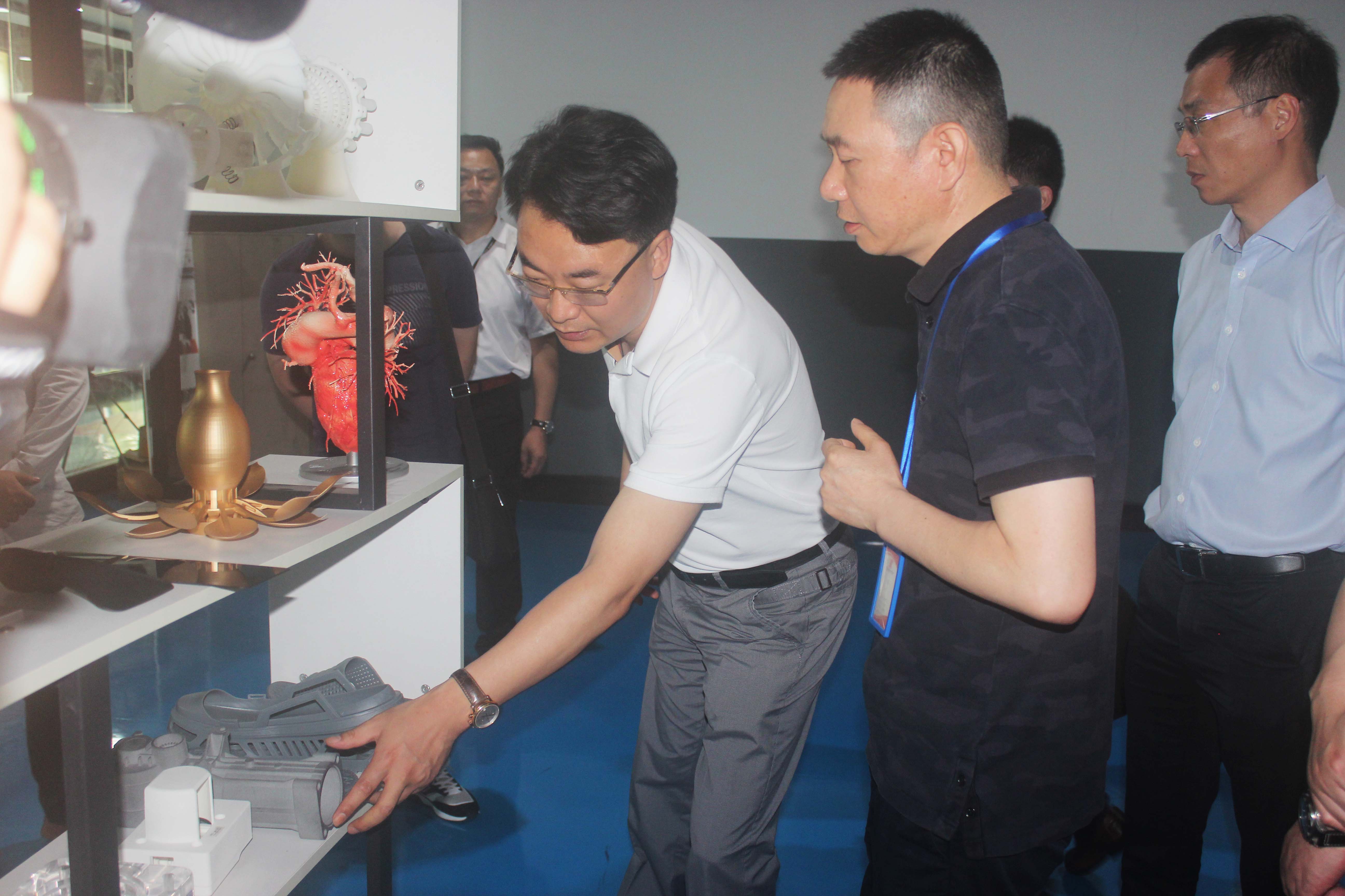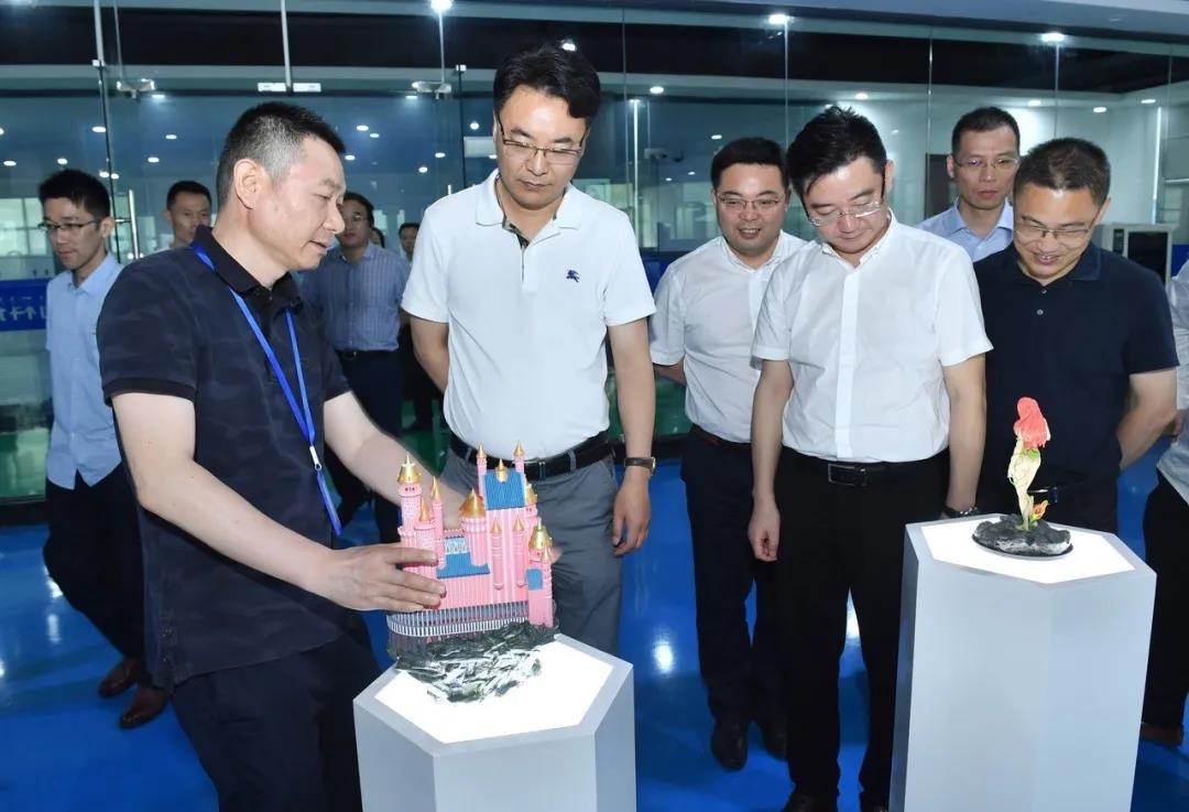 楊書記一行參觀了3D打印車間、3D樣品間,觀察3D打印機打印過程。在樣品間,楊書記了解了3D打印在汽車配件、日用家電、文創教育等領域的具體應用案例,并給予了高度評價,鼓勵我司更好服務我市制造業高質量發展,隨著智能制造的發展,3D打印技術在未來的應用會愈加廣闊。