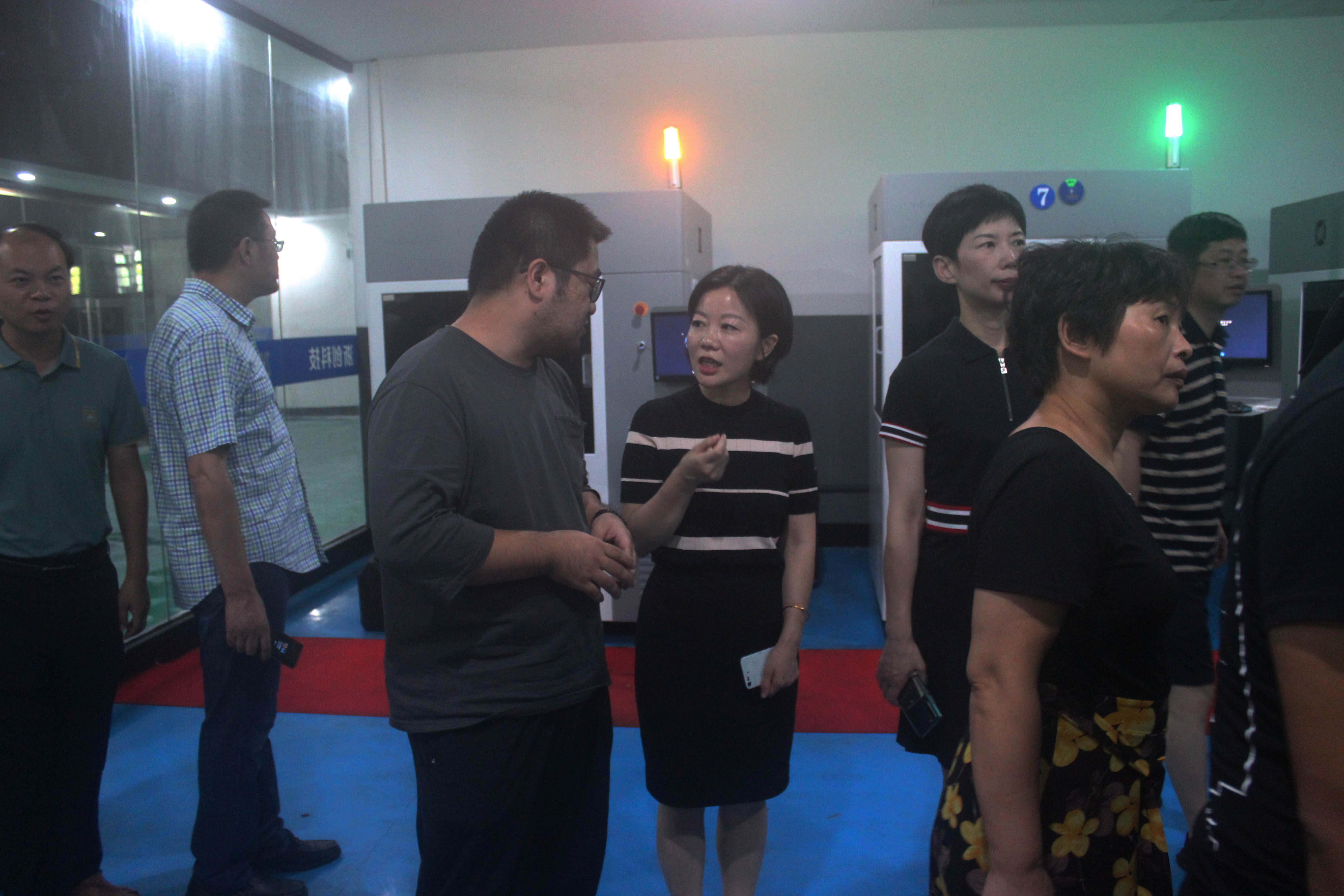 隨后帶領大家一一參觀了3D打印車間與樣品間。3D打印車間的參觀引起了學員們濃烈的興趣,多臺3D打印設備正在運行,陪同的公司領導們向大家介紹了3D打印設備的亮點、設備的運行原理和正在打印的樣件,大家紛紛駐足觀看現場打印效果,我司領導隆重介紹了我司自主研發的SLA 3D打印機自動化程度高、操作簡單,打印產品成本低、形狀多樣、色彩豐富、耗材環保無污染,發展優勢明顯等,學員們頻頻點頭表示贊嘆。